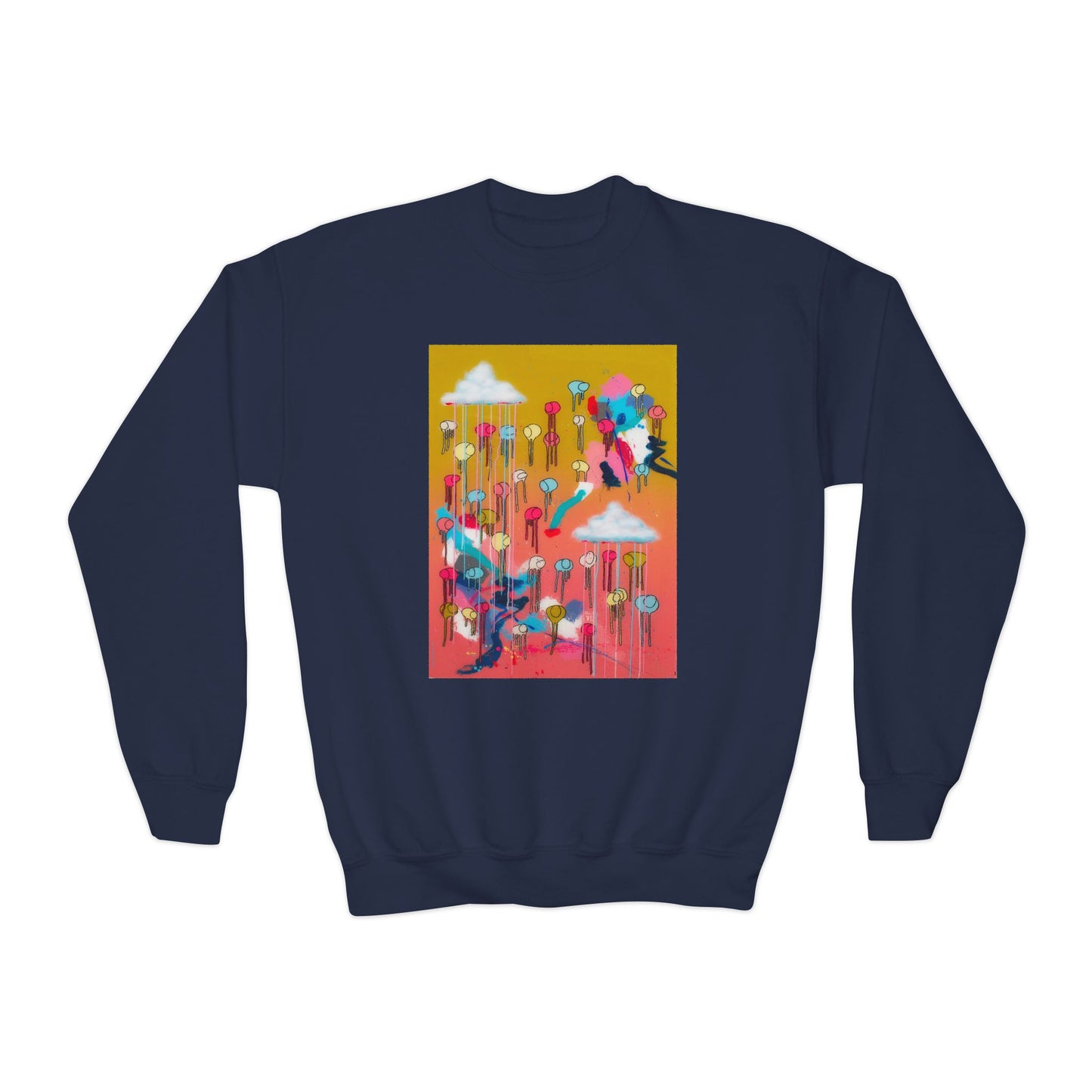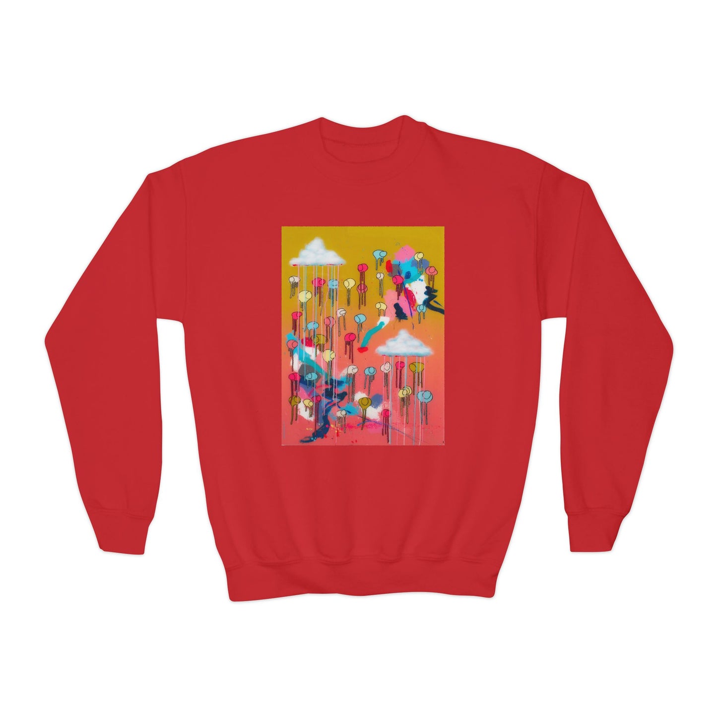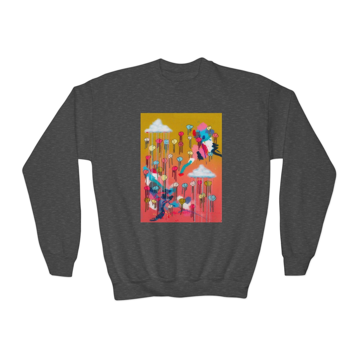 Bring art to life with the RAINING COWS "Bubble Gum Sun" Sweatshirt! Known for my large-scale paintings, I’m excited to offer this cozy and playful sweatshirt for your little ones. Perfect for school, sports, or relaxing with friends, it’s a fun way for kids to wear art and express their creativity.