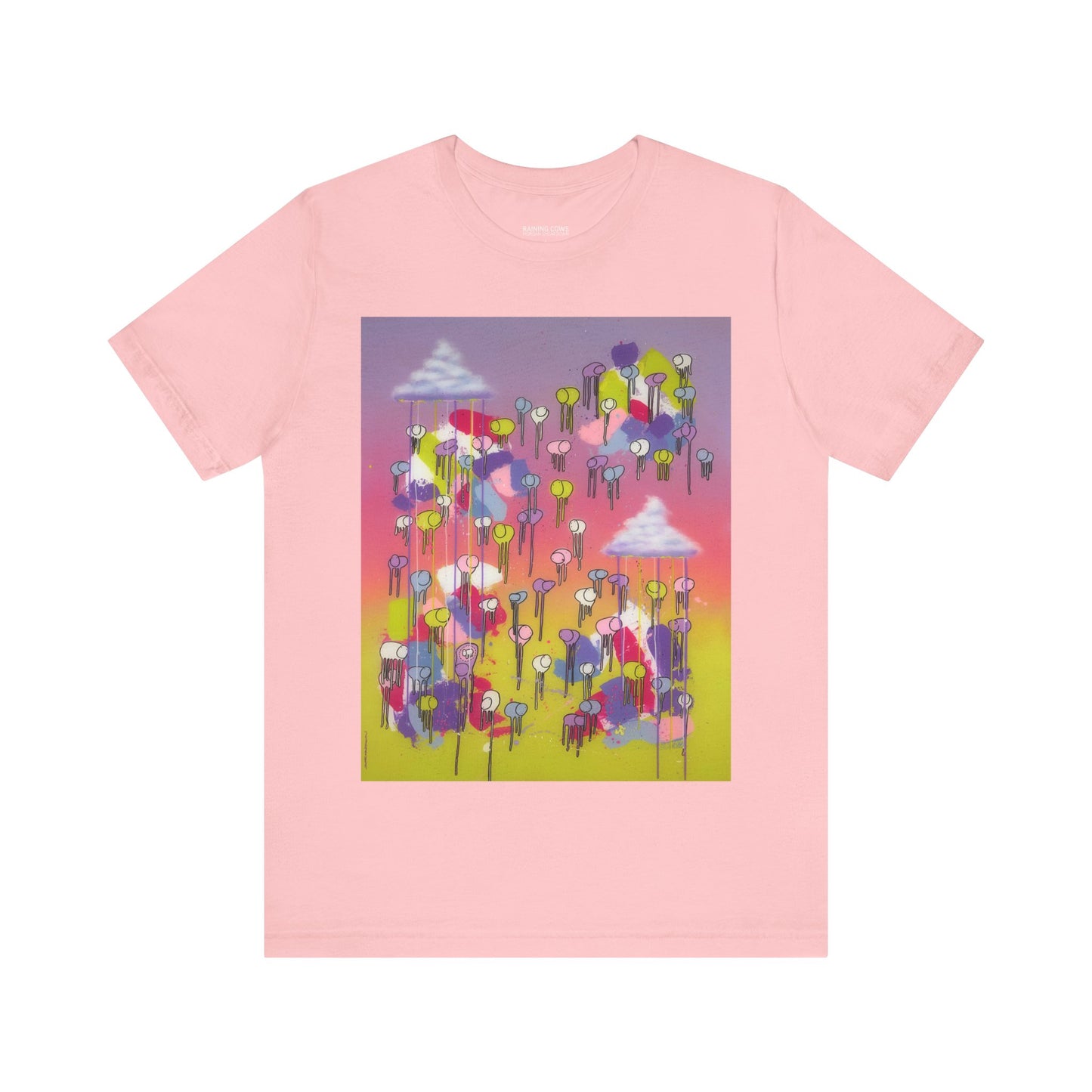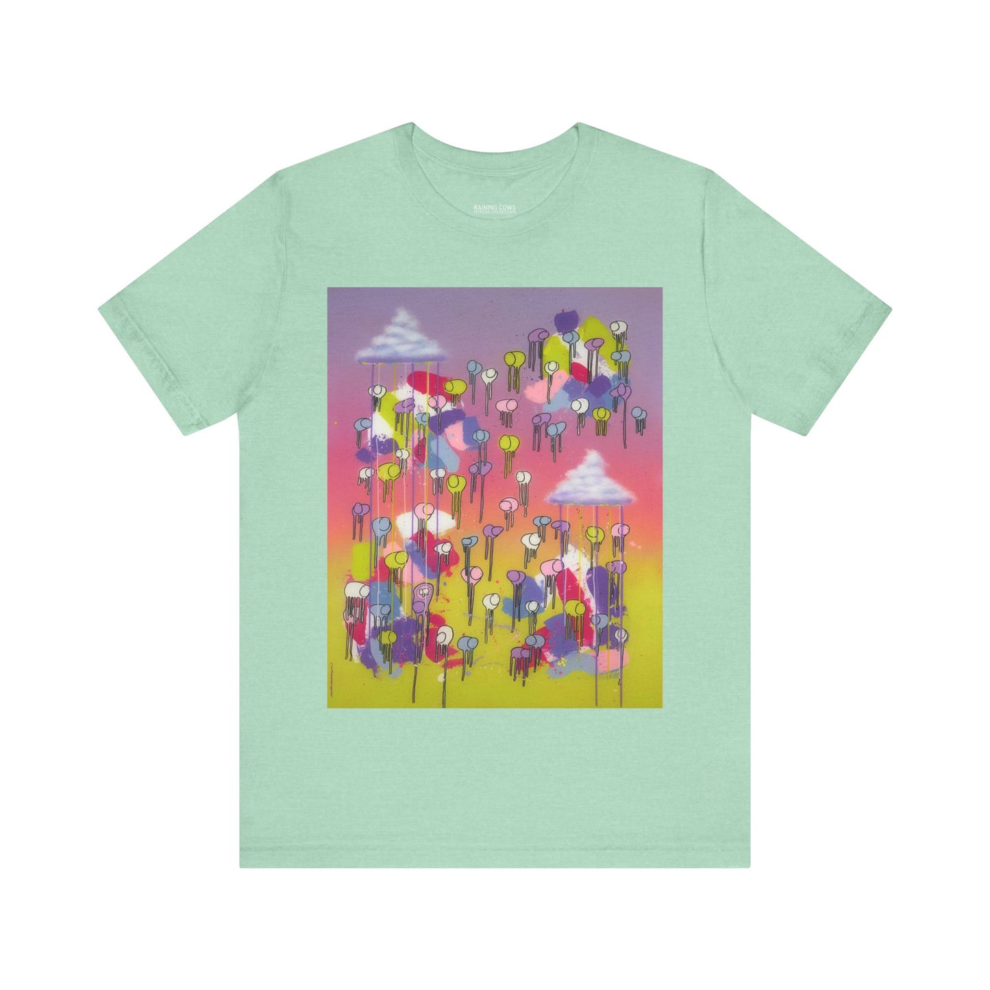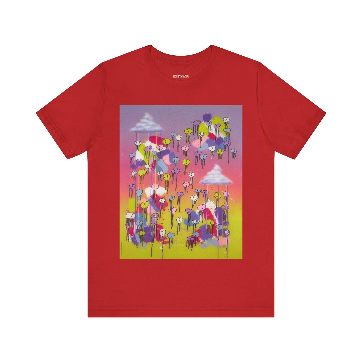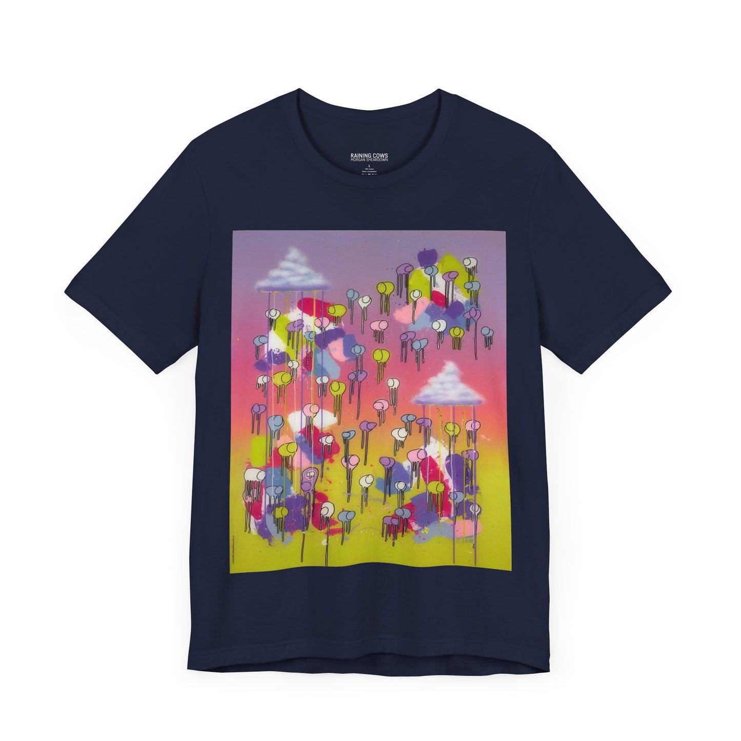 As an artist known for creating large-scale paintings, I’m excited to present a wearable version of my piece, RAINING COWS "Mystical Showers". This t-shirt offers a fresh way to experience my art, and I hope it brings you as much joy as the original painting.