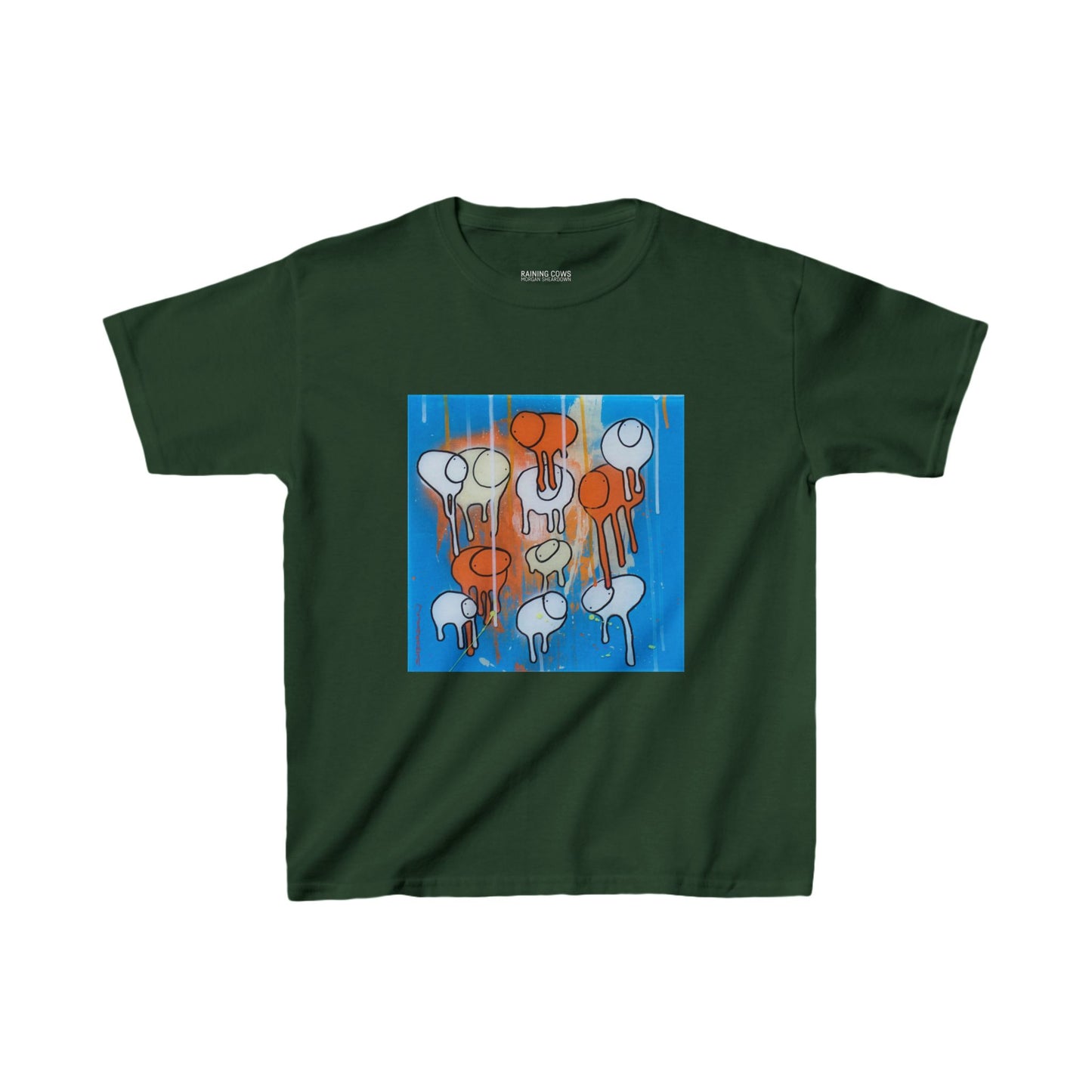 Check out the RAINING COWS kids’ T-Shirts - a super fun and comfy way to bring art to playtime! Made with soft 100% cotton, these tees are not only durable but also perfect for everyday adventures. Whether you're running around the park, or chilling at home, the bright and bold design of cows raining from the sky will have everyone smiling!