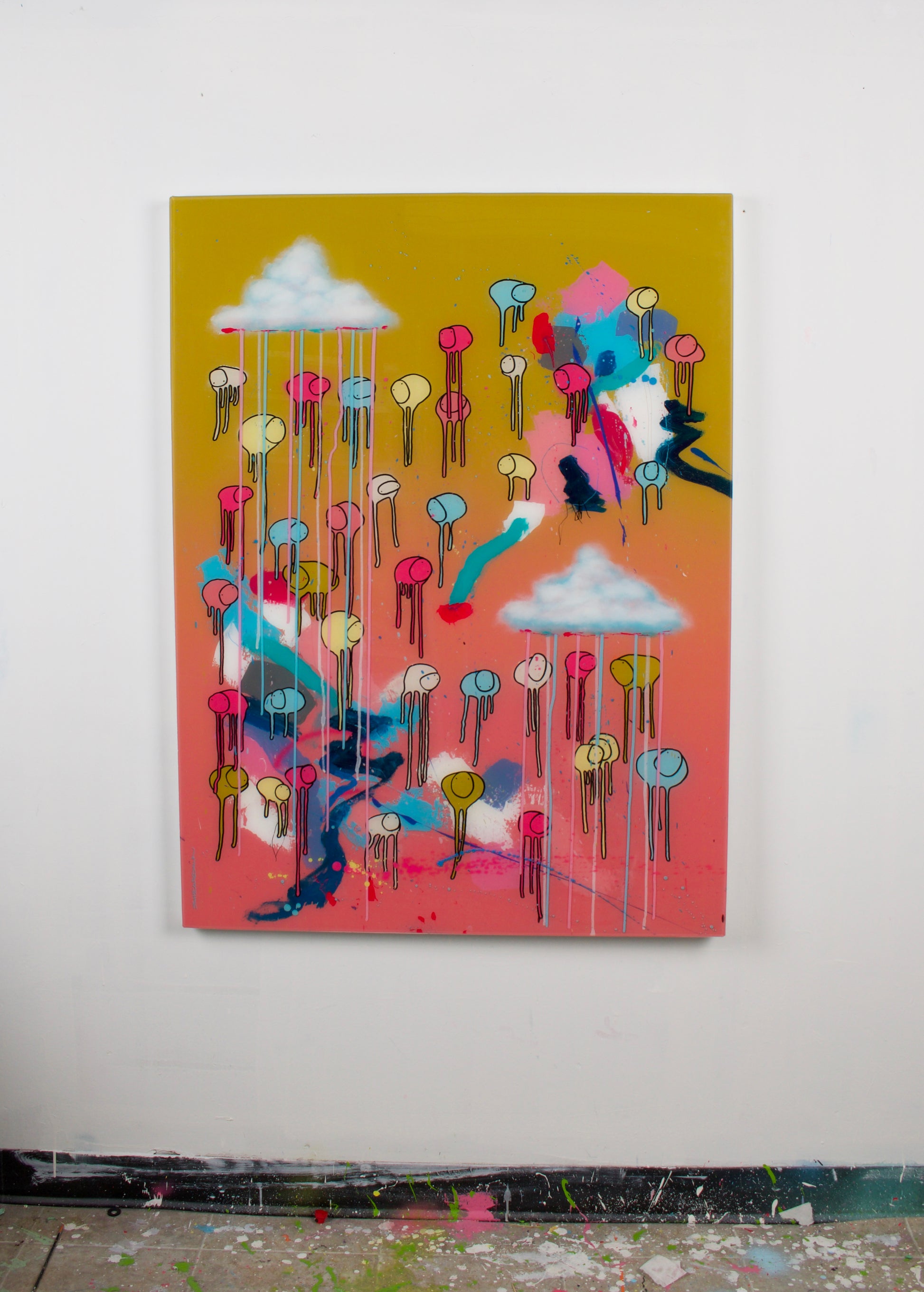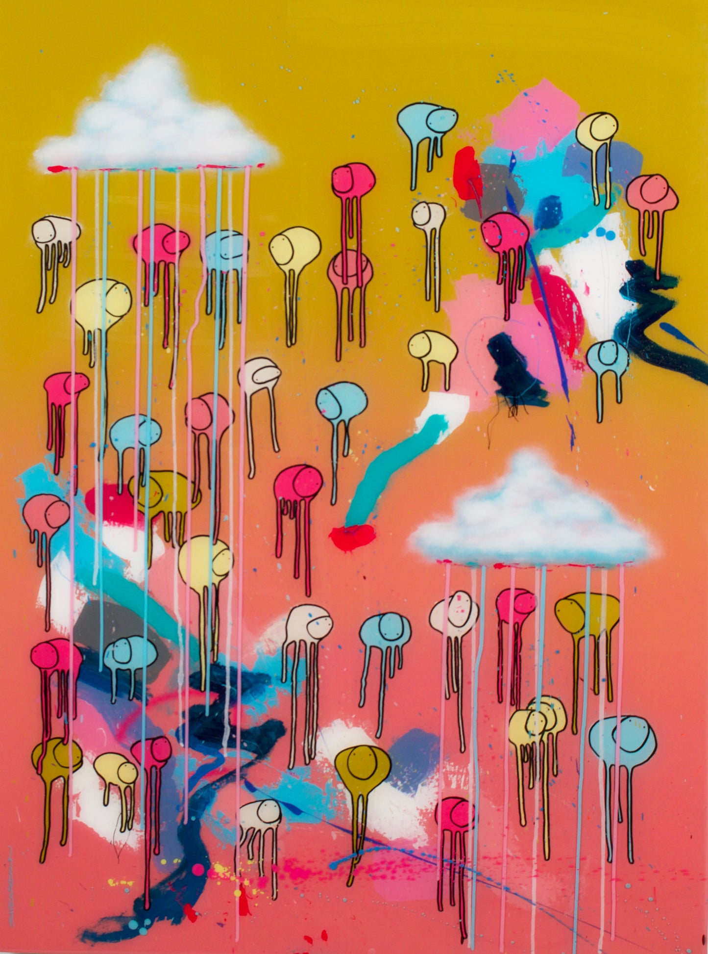 Materials: Mixed media on multi-layered painted resin on wooden panel
