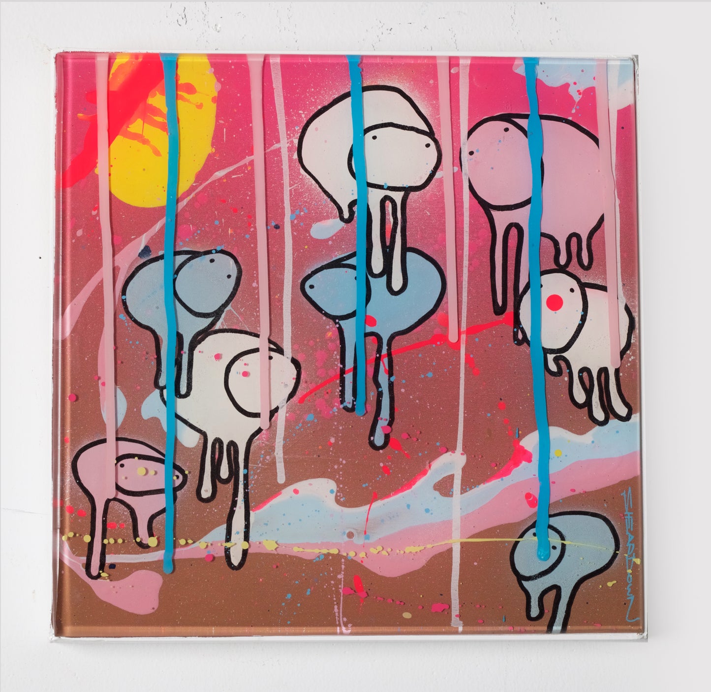 This piece is part of my RAINING COWS series, "Twister," which captures the unpredictable twists and turns of life.