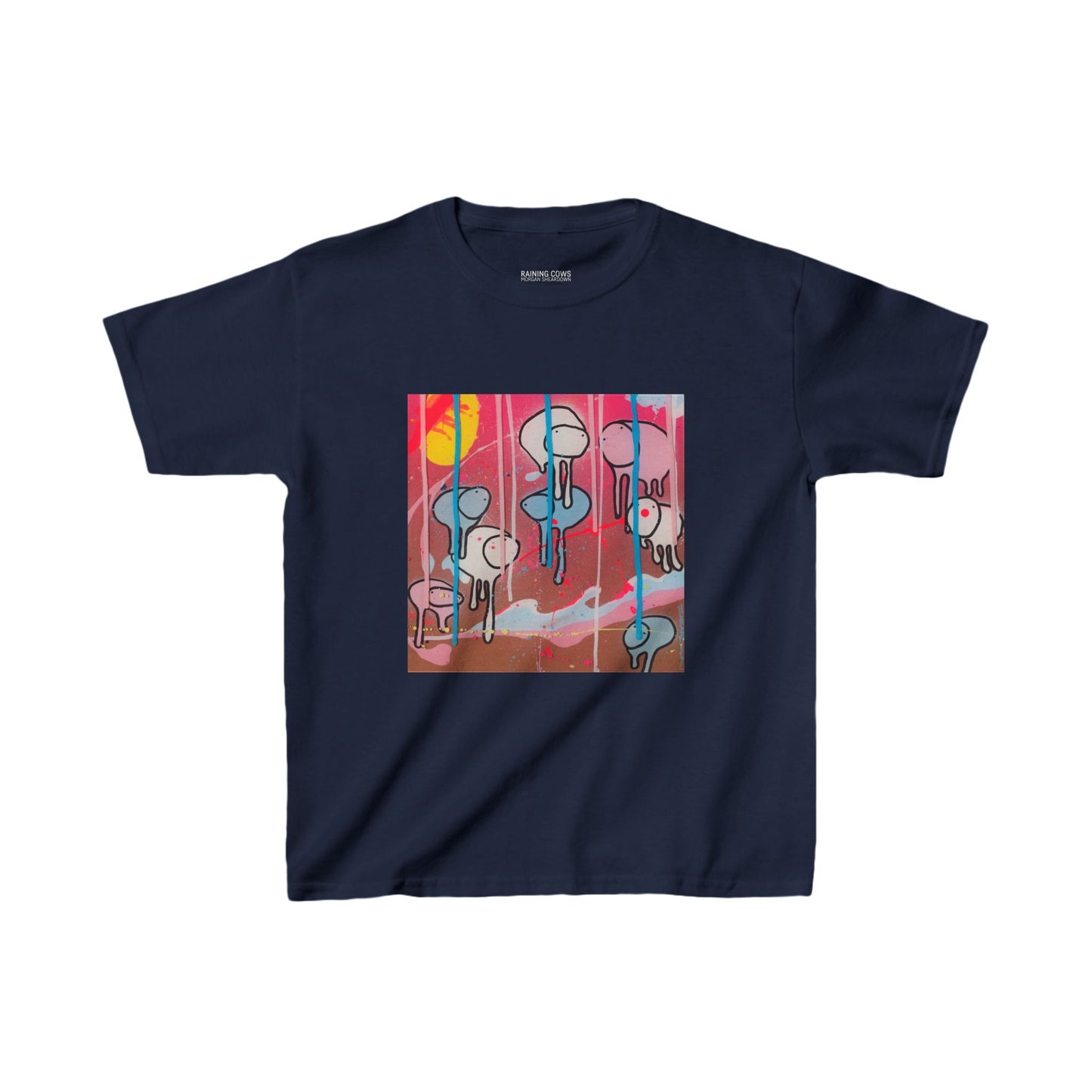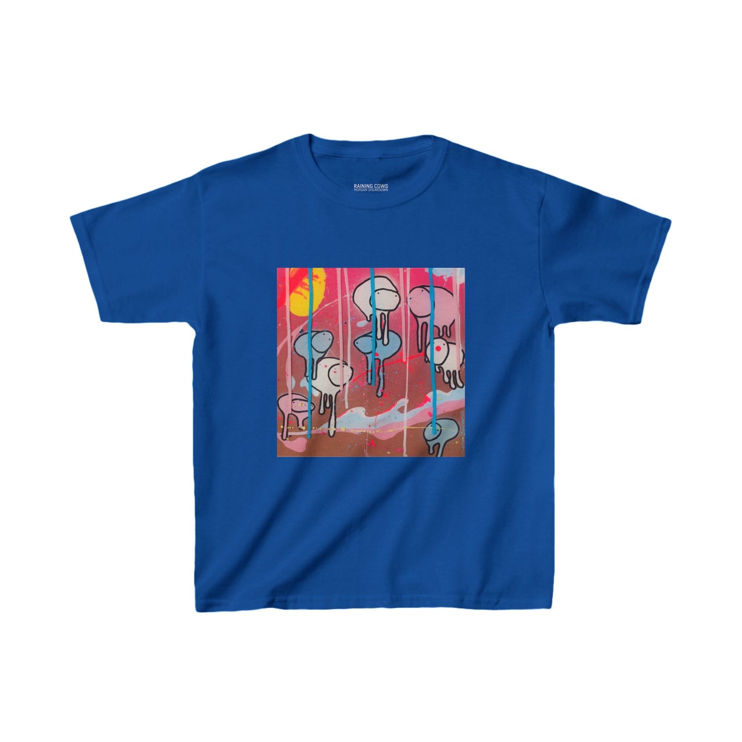 Check out the RAINING COWS kids’ T-Shirts - a super fun and comfy way to bring art to playtime! Made with soft 100% cotton, these tees are not only durable but also perfect for everyday adventures. Whether you're running around the park, or chilling at home, the bright and bold design of cows raining from the sky will have everyone smiling!
