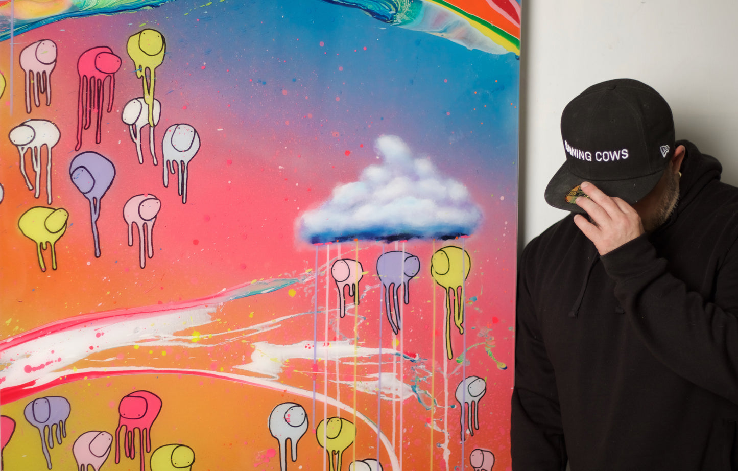 This piece is part of my RAINING COWS series, "Twister," which captures the unpredictable twists and turns of life.