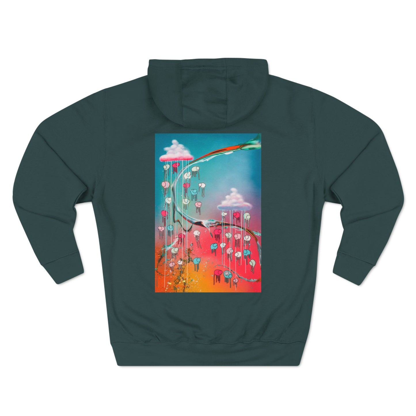 Unleash your inner storm-chaser with the RAINING COWS Hoodie, a bold fusion of style and art that’s as unique as you are. Featuring the RAINING COWS logo on the front, this hoodie is a tribute to the whimsical, weather-inspired artwork that’s making waves. The back showcases a stunning print of one of the most iconic RAINING COWS paintings, ensuring you carry a masterpiece wherever you go.