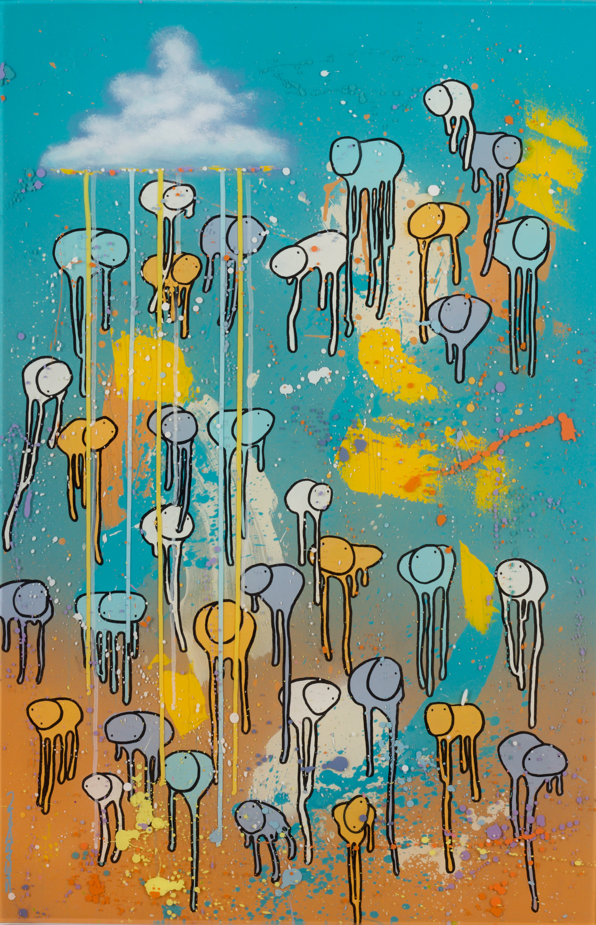 Materials: Mixed media on multi-layered painted resin on wooden panel