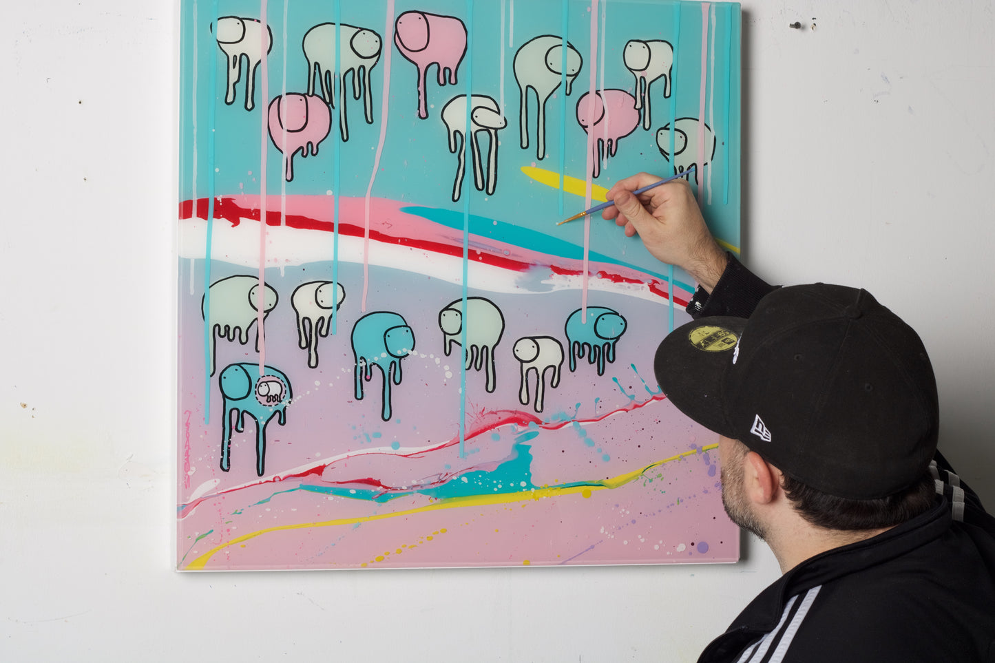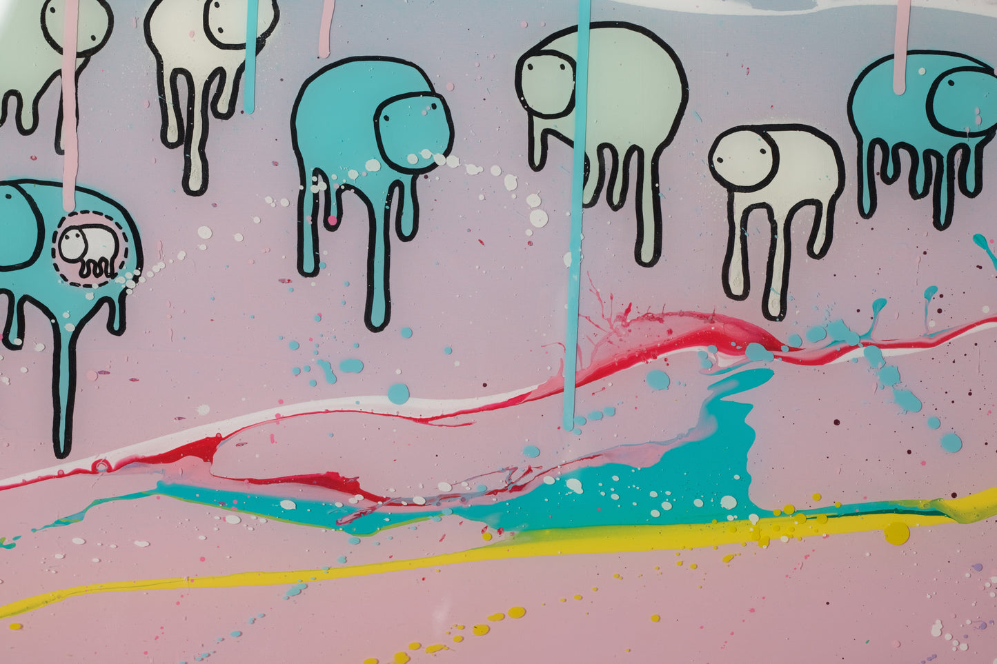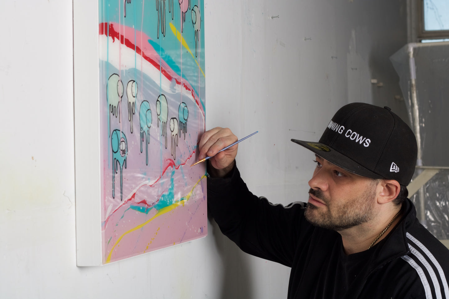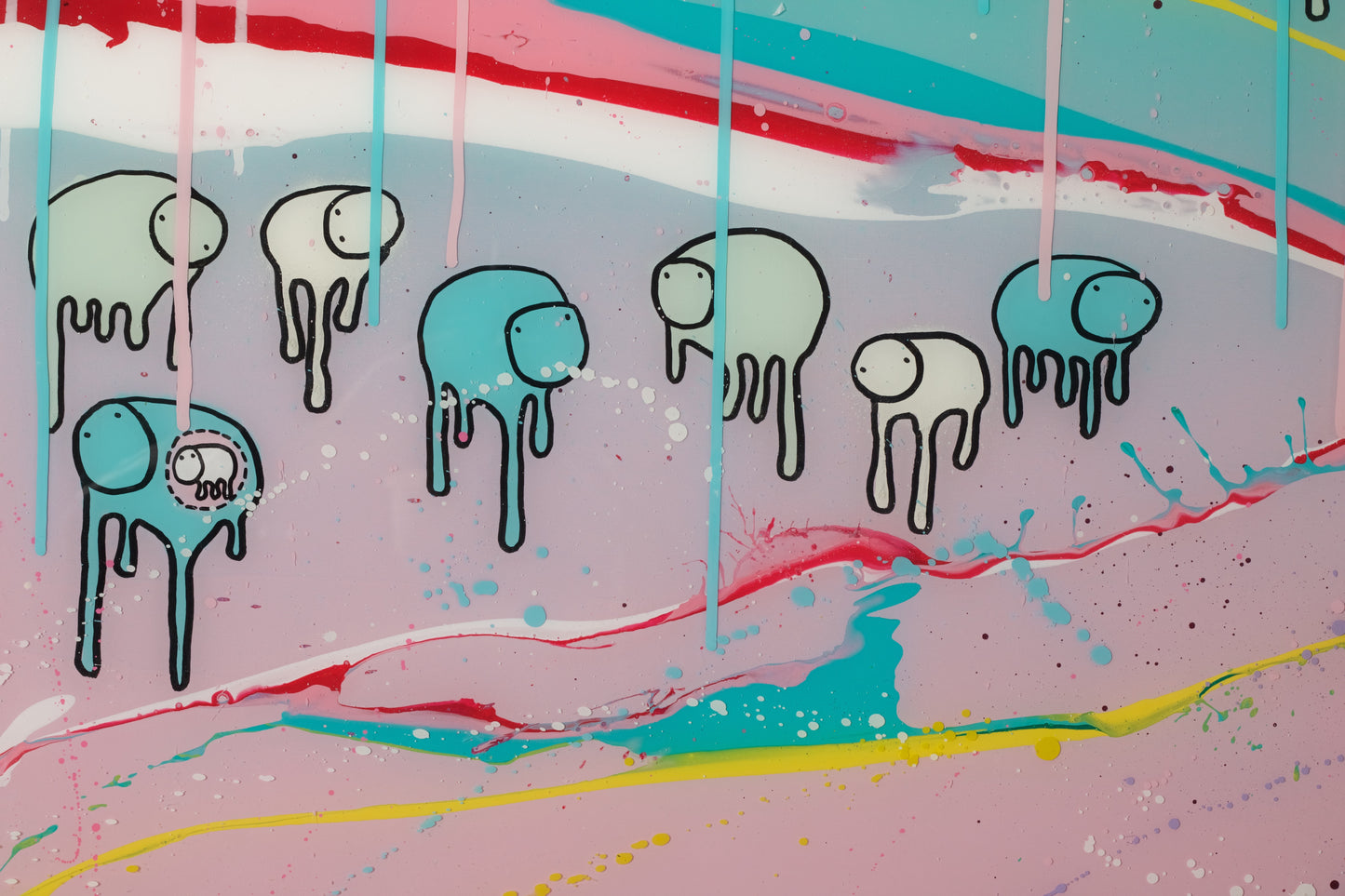 This piece is part of my RAINING COWS series, "Twister," which captures the unpredictable twists and turns of life.
