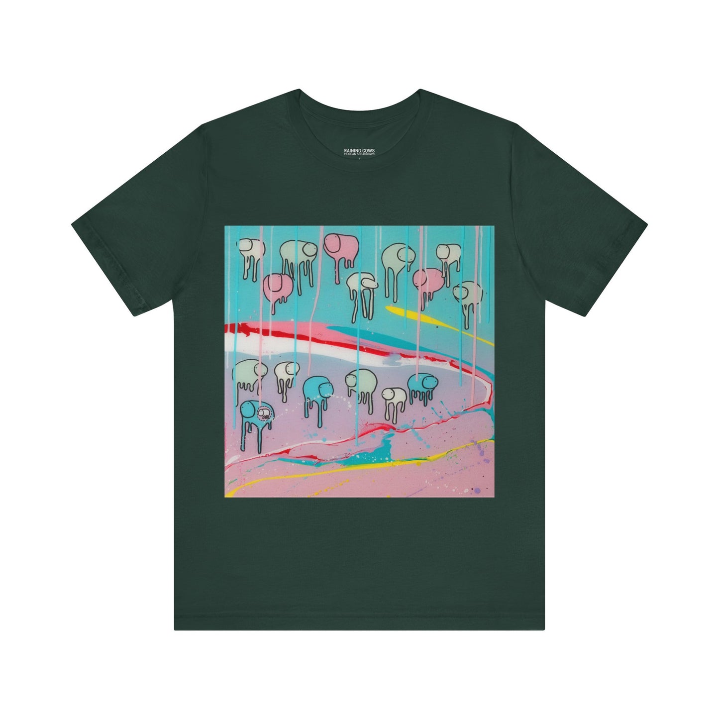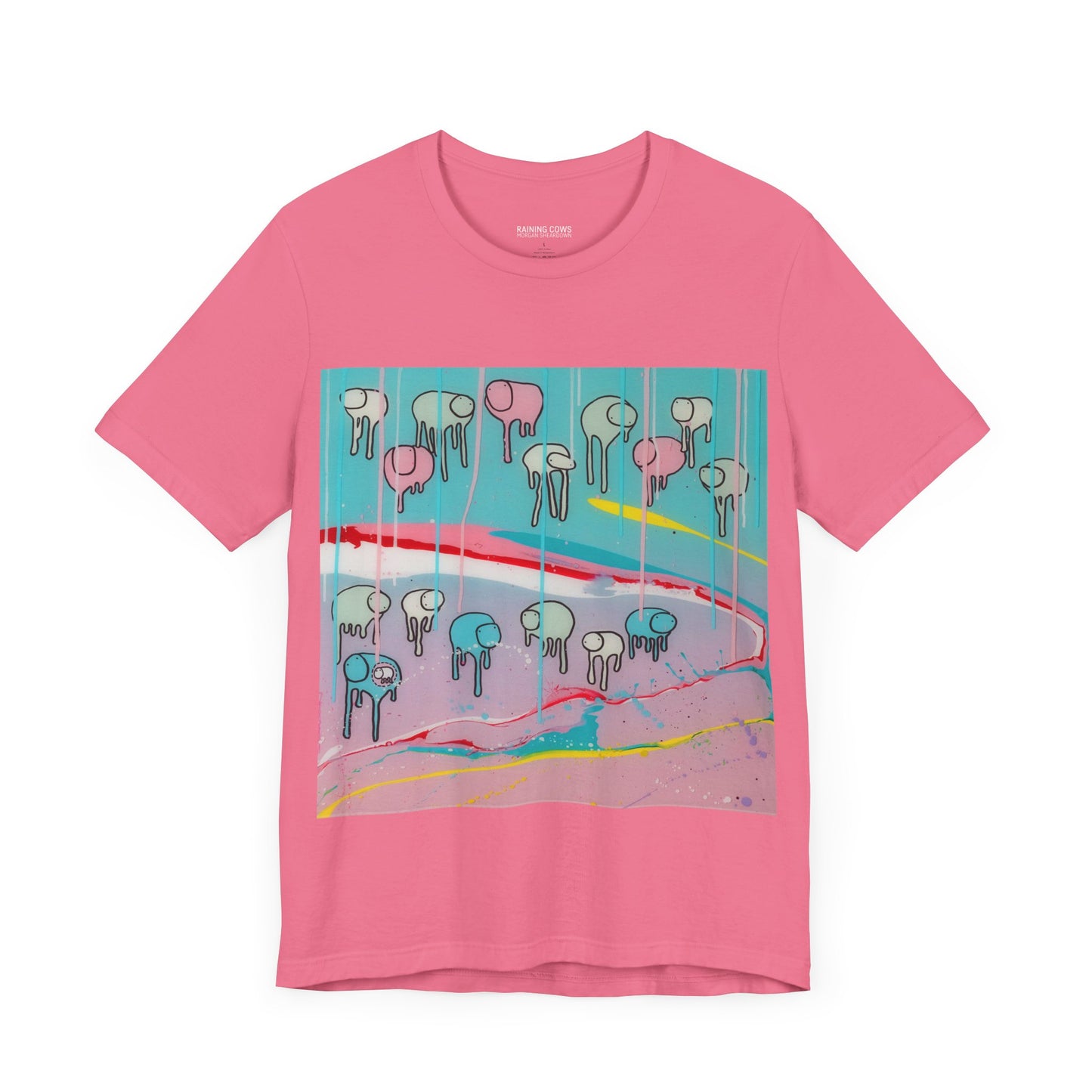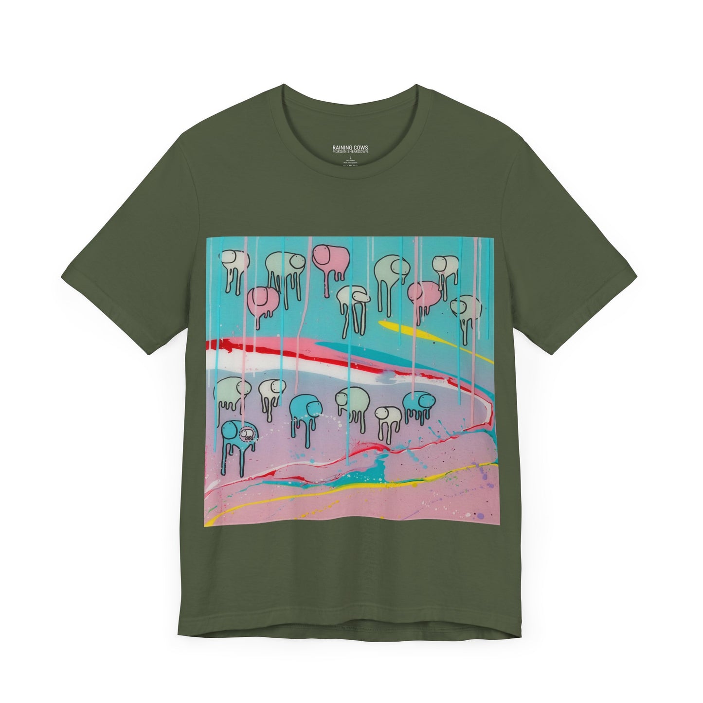 I’m excited to present a wearable version of my piece, RAINING COWS "Martini Twist". This t-shirt offers a fresh way to experience my art, and I hope it brings you as much joy as the original painting.