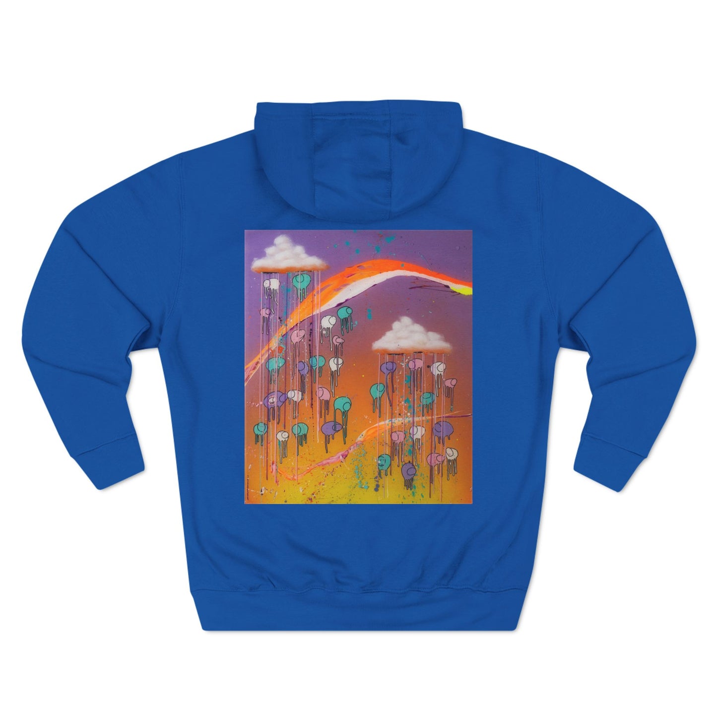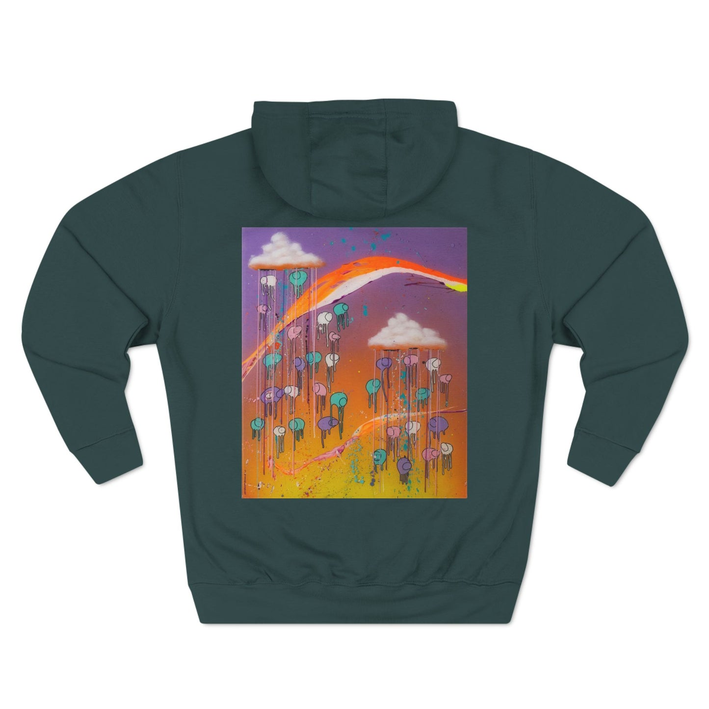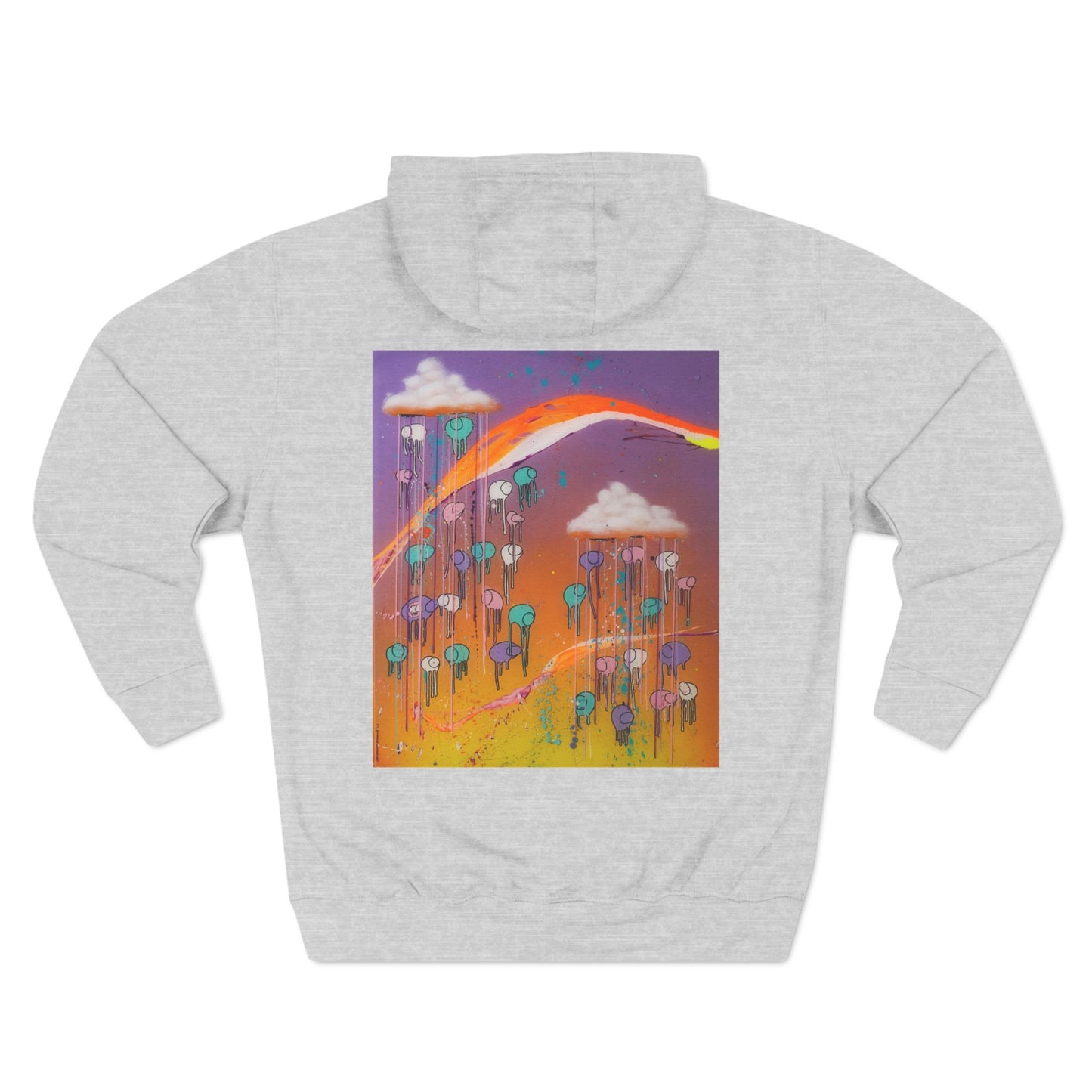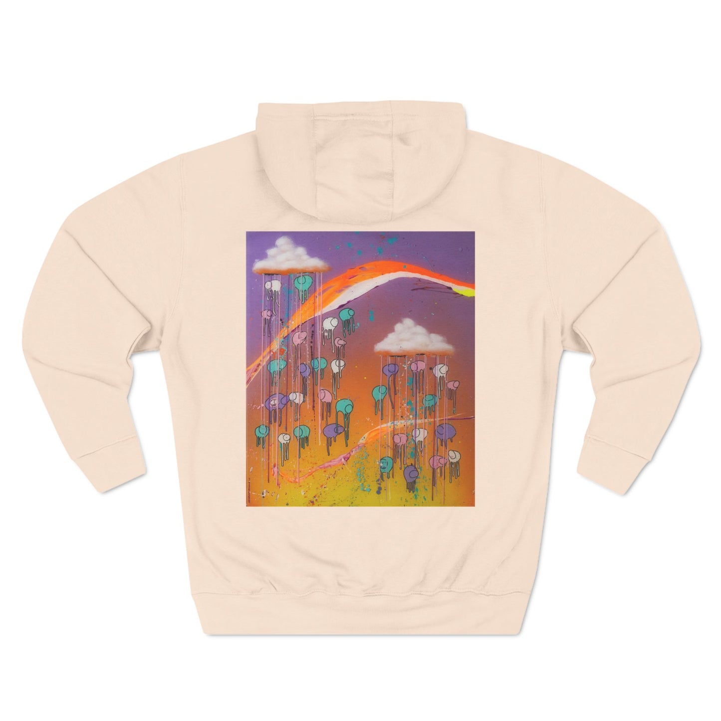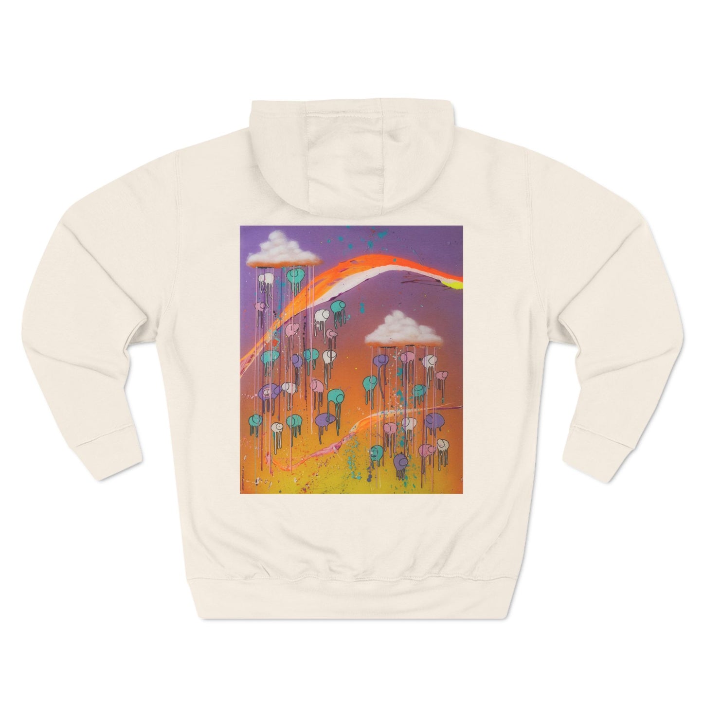 Unleash your inner storm-chaser with the RAINING COWS Hoodie, a bold fusion of style and art that’s as unique as you are. Featuring the RAINING COWS logo on the front, this hoodie is a tribute to the whimsical, weather-inspired artwork that’s making waves. The back showcases a stunning print of one of the most iconic RAINING COWS paintings, ensuring you carry a masterpiece wherever you go.