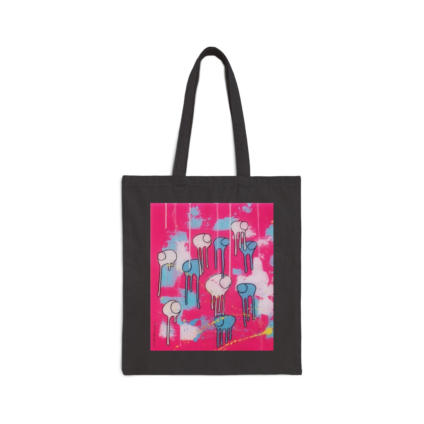 This 100% cotton bag comes in one size – 15" x 16"– perfect for everyday wear. While the canvas material will show off RAINING COWS in great colors, it's durable and will last for years. The bag features 20" handles (made from the same canvas), making it easy to carry even with a week's worth of shopping. 100% cotton canvas