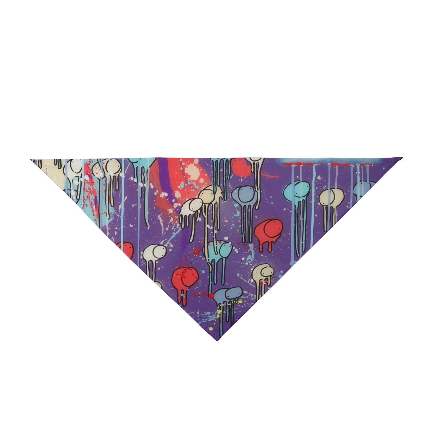 Let your pet strut in style with the RAINING COWS Pet Bandana! Inspired by Morgan Sheardown's iconic RAINING COWS series, this vibrant accessory combines playful whimsy with high-fashion flair. Featuring a cascade of colorful cows against a bold background, this bandana will turn your furry friend into a walking masterpiece. Perfect for pets of all sizes, it's not just a fashion statement – it’s wearable art! Made with soft, durable fabric, it’s designed for comfort and easy cleaning. Whether your pet is chasing the rain or lounging in style, this bandana is the perfect accessory to brighten any day!