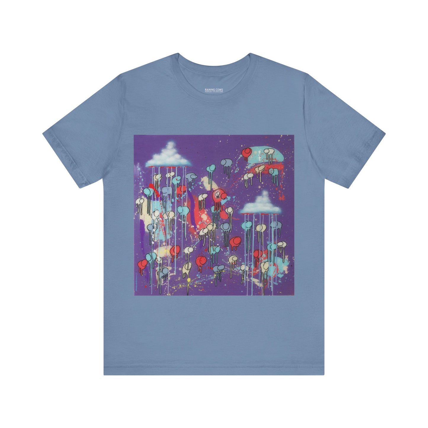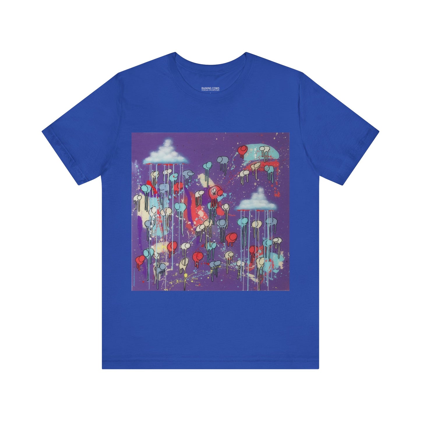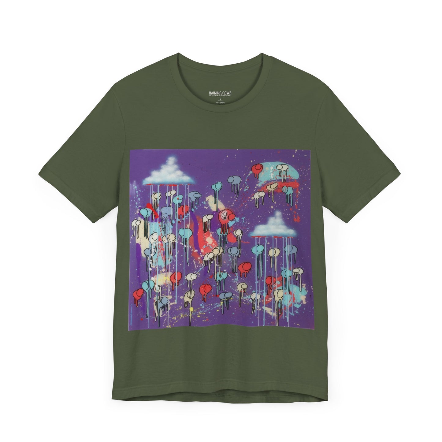 As an artist known for creating large-scale paintings, I’m excited to present a wearable version of my piece, RAINING COWS "A Rose After the Storm". This t-shirt offers a fresh way to experience my art, and I hope it brings you as much joy as the original painting.