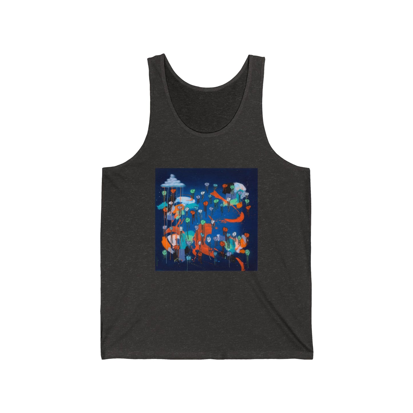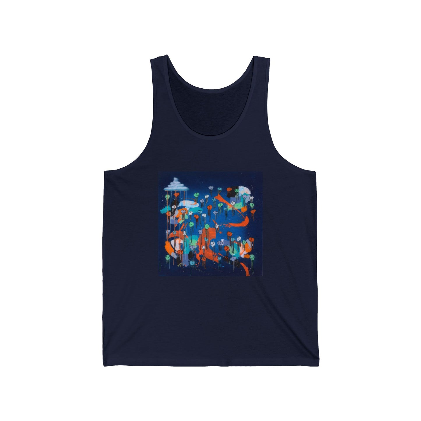 This must-have unisex jersey tank top fits like a well-loved favorite. High quality print makes it an ultimate statement shirt for years to come. This item has side seams to provide structural support. All bindings are the same fabric as the rest of the tank. Depending on the color, cotton, polyester, or rayon can appear.